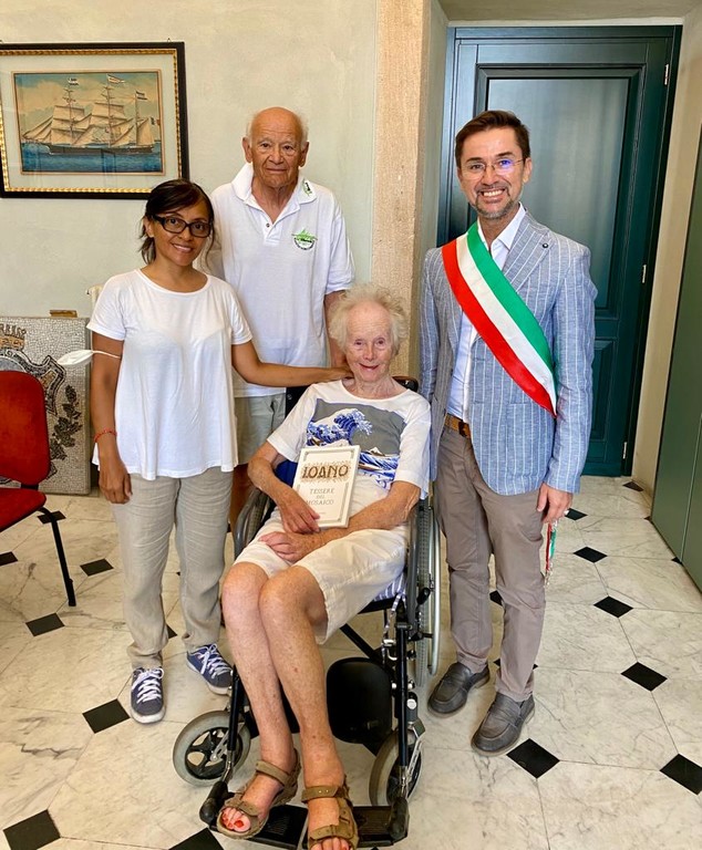 Questa mattina il sindaco di Loano Luca Lettieri ha ricevuto a Palazzo Doria Ursel Nahrendorf Porro, che da ben sessant'anni ogni anno sceglie la città dei Doria come meta delle sue vacanze estive. Ad accompagnarla il marito Renzo Porro.