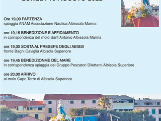 Lunedì 15 agosto, nelle specchio acqueo antistante le Albisole, si potrà assistere alla Processione della Madonna del Mare,"A Madonna du Ma'", a cura del Gruppo Pescatori Dilettanti. La partenza dalla spiaggia NAM Associazione nautica Albissola Marina è prevista alle 19, con arrivo alle 20 presso Capo Torre di Albisola Superiore.