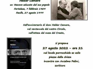 Sabato 27 agosto alle ore 21 nei locali parrocchiali dell'ex asilo in piazza della Chiesa lo scrittore Anselmo Palini presenterà il suo nuovo libro "Hélder Câmara - 'Il clamore dei poveri è la voce di Dio'", ritratto di una tra le figure più importanti della Chiesa universale e della società del secolo scorso, in occasione dell'anniversario della sua morte e nel ventennale del circolo ACLI a lui intitolato e in collaborazione con la Parrocchia Santa Maria Maggiore.