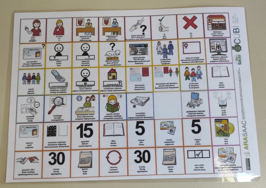 La dottoressa Federica Calabrese, Pedagogista e terapista dell’età evolutiva, specializzata in Autismo, ADHD e disturbi cognitivo-comportamentali e Tutor DSA, ha decodificato ogni sezione della biblioteca in CAA e PECS, ha creato una vera e propria agenda comunicativa utente/bibliotecaria per lo scambio di informazioni utili al prestito e alla consultazione dei libri e semplificato, sempre attraverso la decodificazione, anche le regole degli spazi comuni.
