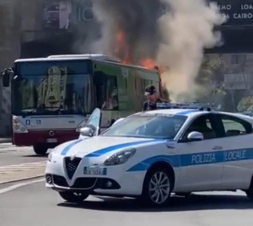 Savona, autobus in fiamme alla rotonda di Corso Tardy e Benech, intervento dei Vigili del fuoco (FOTO e VIDEO)