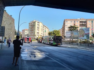 Questo pomeriggio a Savona i soccorsi si sono mobilitati per un autobus di Tpl Linea che ha preso fuoco alla rotonda all'inizio di corso Tardy e Bennech, lato via Stalingrado.