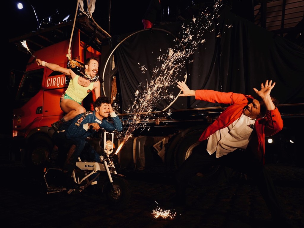 L’interazione indiavolata dei performer tra la terra, il palco, il rimorchio, la cabina, il dialogo tra le diverse discipline e le diverse altezze rendono questo spettacolo l’indimenticabile occasione per tornare a godere dei grandi eventi di strada.