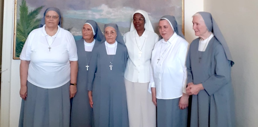Suor Maria Antonietta Lucisano è la nuova madre provinciale delle Figlie di Nostra Signora della Misericordia: la religiosa è stata eletta nel corso del Capitolo Provinciale tenutosi dal 19 al 21 agosto a Savona. Nella foto la vediamo seconda a destra e ripresa insieme alla vicaria suor Mansueta Dalcielo, alla consigliera suor Annamaria Finocchio, alle suore Giuseppa Prestifilippo e Antonia Ortelli e alla madre generale suor Angela Maria Vieira Santos.