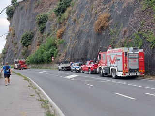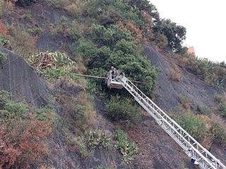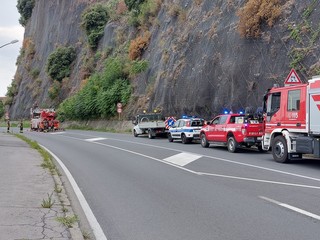 Intervento dei Vigili del fuoco nel pomeriggio odierno, intorno alle 17, per la messa in sicurezza della parete rocciosa che sovrasta la via Aurelia all'altezza della caserma della Capitaneria di Porto di Savona, verso il confine con Albissola.