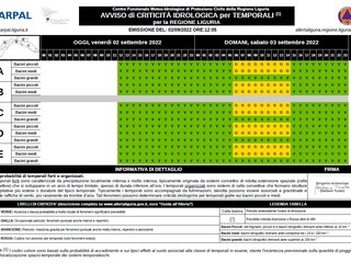 Ancora maltempo in Liguria: sabato 3 settembre allerta gialla per temporali