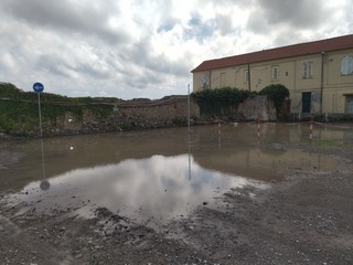 In merito ai lavori nel parcheggio di villa Pizzardi, mi duole constatare come questi, ormai svolti nonostante fossero evidentemente procrastinabili al termine della stagione estiva, siano stati addirittura peggiorativi della situazione ex ante. La ghiaia e il terriccio utilizzati per coprire il prato hanno reso ancor più impermeabile il terreno, con il risultato che dopo la breve pioggia odierna buona parte dell'area risulta totalmente inutilizzabile come da foto allegate.