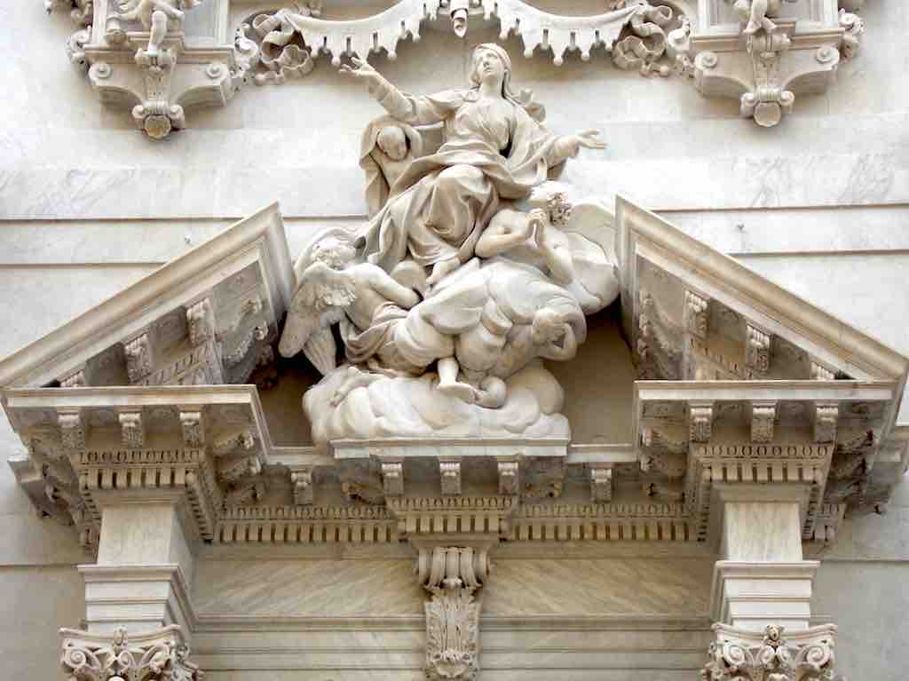 Torna a "splendere" la facciata neobarocca della Cattedrale Nostra Signora Assunta. Sono stati completati infatti il restauro e la messa in sicurezza dell’imponente struttura frontale ed è stato rimosso il grande ponteggio edilizio che ha consentito a tecnici e restauratori di controllare lo stato di usura della pietra e lo sfarinamento del marmo, in particolare nel gruppo centrale dell’Assunta. La delicata e laboriosa opera è stata anche l’occasione per realizzare la mappatura dell’intera facciata.