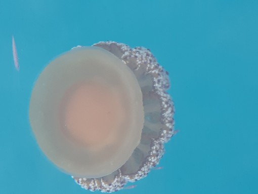 E' il caso della “Cassiopea Mediterranea” (Cotylorhiza tubercolata), avvistata nei giorni scorsi in diversi esemplari nel mare di Finale Ligure tra il porto turistico e Varigotti. Si tratta di un bellissimo celenterato di circa 40 cm, non pericoloso per la specie umana, con colori sgargianti e generalmente accompagnato da piccoli pesci pelagici. Si muove appena sotto il pelo dell'acqua seguendo il movimento delle correnti marine per le limitate capacità motorie. Il suo veleno è solo leggermente urticante, innocuo per gli esseri umani.