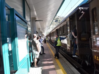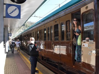 Il treno si è fermato quasi un’ora alla stazione per consentire ai viaggiatori la visita al Museo mentre, all’arrivo nella stazione di Ventimiglia, i passeggeri visiteranno la mostra dedicata alla storia della linea ferroviaria, una linea costiera di enorme fascino che ha contribuito in maniera fondamentale allo sviluppo turistico ed economico della Liguria di Ponente.