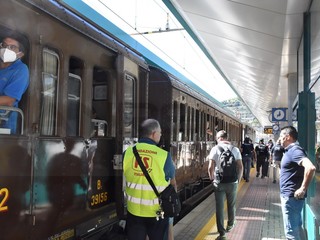 Il convoglio è partito da Brignole alle 9.45 e, seppur con un ritardo di 25 minuti, si è fermato sul binario 1 della stazione di Taggia, dove ha anche sede il Museo Nazionale dei Trasporti.