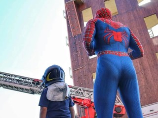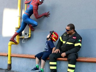 "Quel giorno in ospedale mi dicesti che uno dei tuoi più grandi sogni era quello di diventare da grande un vigile del fuoco e dunque eccoci qua - ha aggiunto il popolare super eroe - Devo essere sincero, questa volta io ho fatto poco perché il grande lavoro è stato fatto da questi ragazzi che volontariamente hanno organizzato una giornata magnifica. Siamo andati sull'autoscala e abbiamo raggiunto i trenta metri toccando il tetto del castello, abbiamo visto come gestire una bombola di gas in fiamme e come spegnere il fuoco con la manichetta antincendio. Ti abbiamo nascosto e fatto trovare dai magnifici cani da ricerca che ci hanno dimostrato l'utilità e la bellezza del loro lavoro,abbiamo guidato il drone, visitato il museo e alla fine del percorso ci hanno fatto trovare una gustosissima merenda".