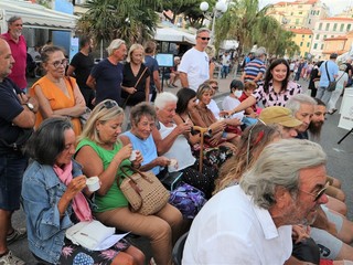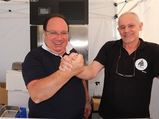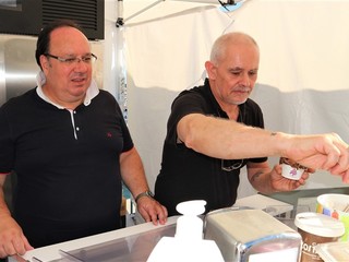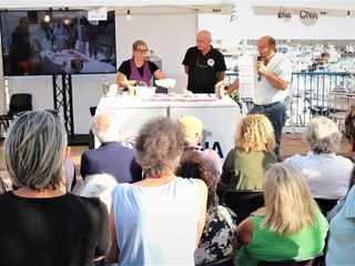 Durante lo show cooking condotto dal giornalista Claudio Porchia, Aldo De Michelis e la moglie hanno proposto due autentiche prelibatezze. Dapprima l’”Acciugò”, una creazione di gelateria che può essere gustato anche come antipasto e non solo dessert. Un gelato composto da pane, e panna montata con l’acciuga, ispirato all’acciugotto, una de.co del comune di Alassio.