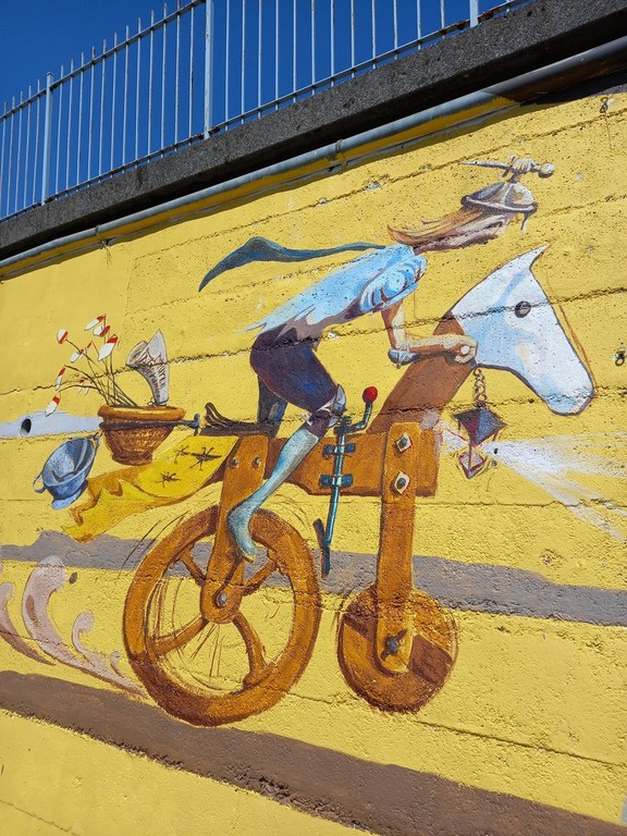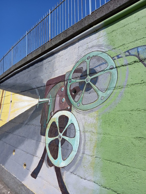 Il progetto è nato nel 2020 in piena pandemia. Alto circa 3.50 metri con un sviluppo totale di 330 metri, il murale è caratterizzato da diverse scene collegate dalla medesima fonte di sviluppo che richiama lo sguardo dello spettatore. La storia industriale del territorio, strumento di collegamento al Ferrania Film Museum, è stata usata come sfondo per l'intera opera. Il tutto con riferimenti alle varietà botaniche che fanno da base agli animali locali, dalla caratteristica di guardare negli occhi lo spettatore suscitando un contatto bidirezionale. L'opera è stata realizzata da Barbara Alessandri, Enrico Roberto Morelli e Stefania Semolini.