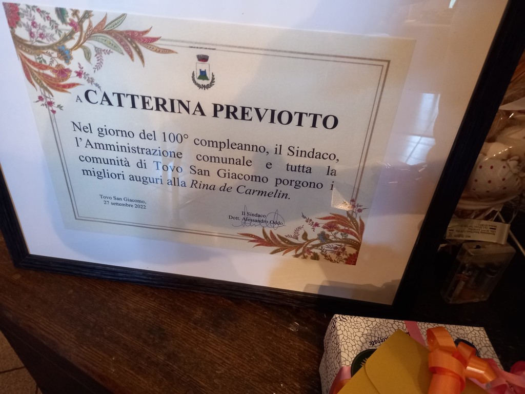 "Ho consegnato, insieme all’assessore Luigi Barlocco a nome di tutta la comunità di Tovo San Giacomo una pergamena ricordo di auguri ed ho ricevuto la grande emozione di ricevere un forte e grande abbraccio che porterò sempre con me! - ha concluso il sindaco tovese - Tantissimi auguri Rina, buon compleanno!".