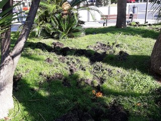 Varazze, mamma cinghiale e cuccioli al "pascolo" in centro città (VIDEO)
