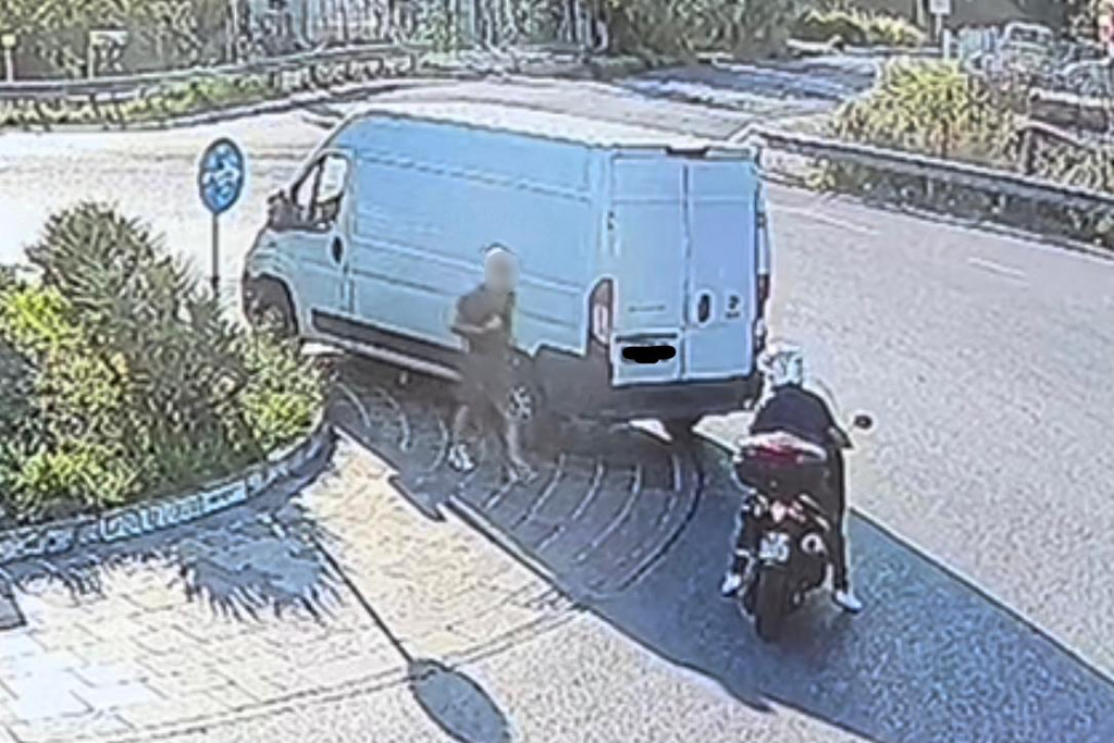 Stop al centro della rotonda per attaccare adesivi della Samp, pizzicato dal sindaco: prima la lite, poi la pace
