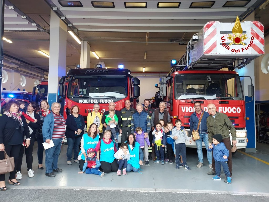 I bambini tra i 5 e i 3 anni hanno consegnato dei doni e il libro realizzato da Unicef Liguria “ Gli Occhi dei ragazzi guardano oltre. Un anno di scuola con il coronavirus” ai vigili del fuoco amici dell'Unicef.