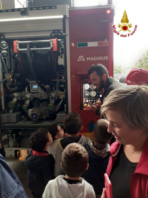 I loro occhi si sono illuminati quando due vigili sono scesi giù per il tubo e hanno acceso la sirena dell'autopompa. Uno dei bimbi ha chiesto al comandante dove mangiano i vigili e come premio i bambini hanno fatto merenda nella mensa della caserma come dei piccoli pompieri.