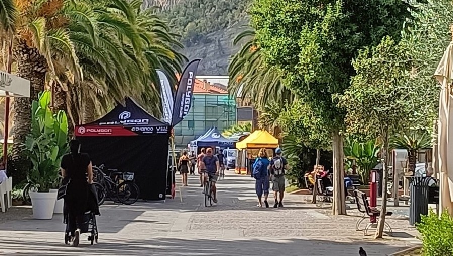 Furgoni parcheggiati anche in spazi di fortuna, qualche parcheggio in meno, specialmente per le auto, bikers che scorrazzano per il centro cittadino e il lungomare "invaso" dai gazebi. Insomma, un po' di "allegro disordine" per le strade di Finale, da una settimana centro nevralgico della mountain bike a livello mondiale.