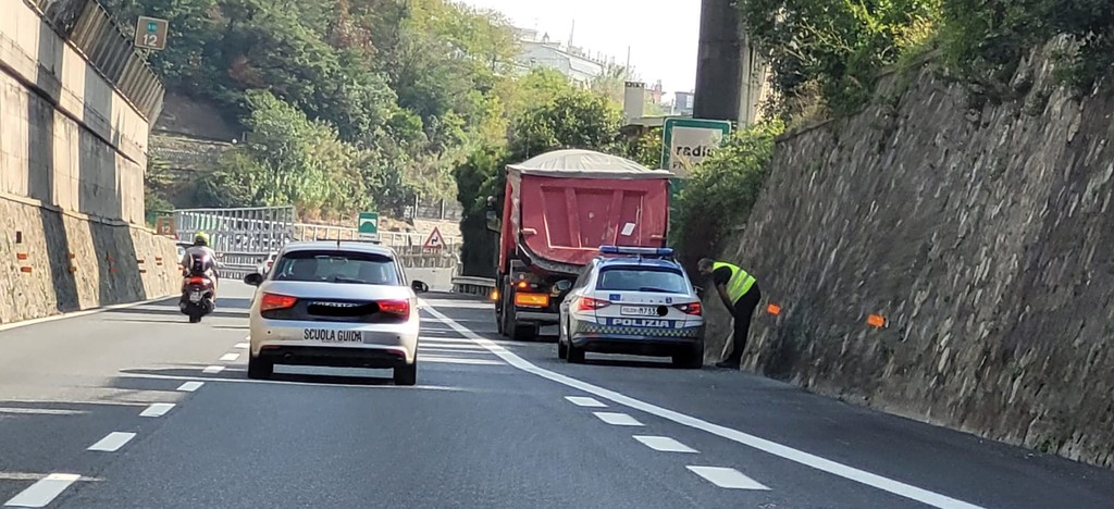 Camion perde pietre in autostrada, disagi sulla A10 tra i caselli Pegli e Genova