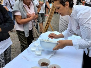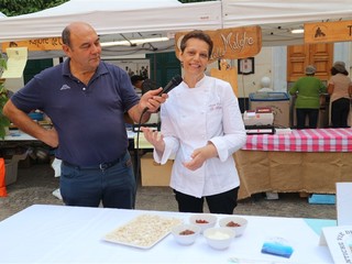 Al termine dello show cooking condotto dal giornalista Claudio Porchia, sono state distribuite oltre cento porzioni e gli applausi convinti e ripetuti rivolti alla chef sono stata la testimonianza più evidente del gradimento da parte del pubblico e del successo di un piatto, che ha saputo unire sapori e profumi del mare con quelli delle malghe.