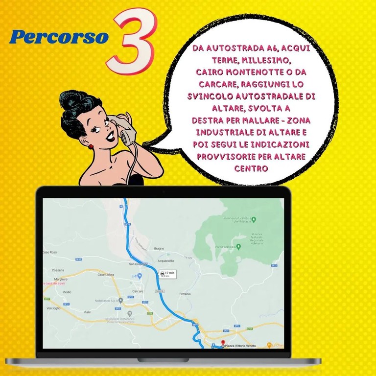Una campagna social per comunicare un concetto importante: niente panico, "Ad Altare si può arrivare!" con tre facili percorsi alternativi.