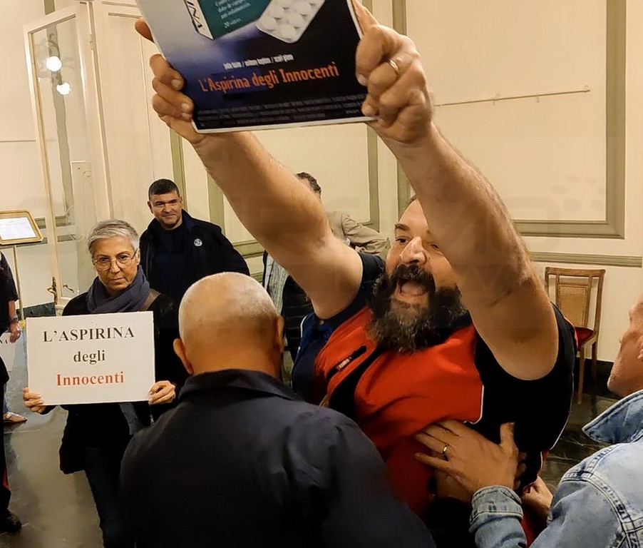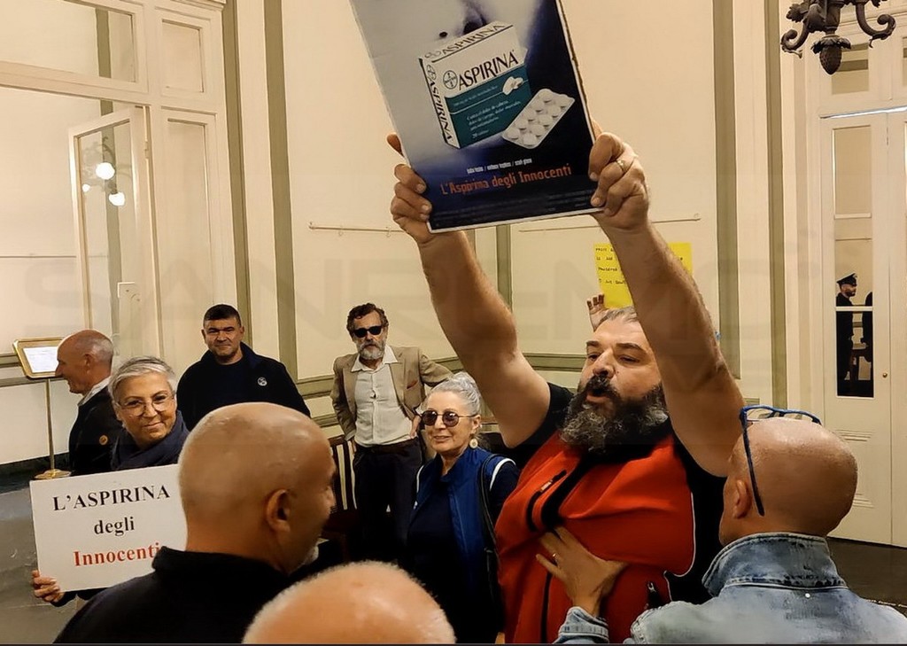 Alcuni minuti prima del suo arrivo, una decina di manifestanti con tanto di cartelli, ha atteso Bassetti che, invece di transitare dalla classica ‘Porta teatro’ è entrato al Casinò direttamente con la macchina. Una volta dentro il foyer ha risposto alle domande dei giornalisti e, poco dopo, è stato assalito e minacciato da alcuni manifestanti. Difeso dalle forze dell’ordine è potuto poi entrare in teatro, confermando di non voler risponde alle invettive: “Basta guardare chi è in teatro” ha detto.