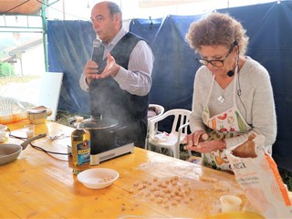 A partire dalla cena del sabato con prodotti di grande eccellenza come la farinata di Moco, le torte salate di Albenga in Tavola con la Zucca di Rocchetta preparate con il Miscuglio di Aleppo; salumi eccezionali come la testa in cassetta della vicina Cosseria, piccole chicche come l’Hummus con la zucca, la crema di pisello selvatico accompagnata dall’olio di zucca, una delle grandi novità di questa edizione. Anche in questa edizione sono stati presenti importanti ospiti a partire da Luciano Bertello, grande esperto della cultura culinaria piemontese, a Clelia Vivalda Chef, che ha condotto un laboratorio per ragazzi dal titolo “Mani in Zucca” in cui ha spiegato come si preparano gli gnocchi alla zucca. E poi Renata Cantamessa alias “Fata Zucchina” con il suo ultimo libro “Cappuccetto Greeen” e Claudio Porchia, Presidente de” I Ristoranti della Tavolozza”, che ha condotto gli incontri e laboratori con la consueta simpatia e professionalità. Successo anche per il 12° concorso di pittura estemporanea, per il tradizionale rito della pesatura, piombatura e registrazione Zucche di Rocchetta e per l’esibizione Scuola di danza “Scarpette Rosse” di Cengio