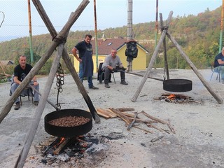 Folla delle grandi occasioni per il Palazucca che ha offerto un delizioso menù alla carta con piatti tradizionali realizzati con la regina della festa, la Zucca di Rocchetta e il Moco delle valli della Bormida, per la “Gran Castagnata con i maestri caldarrostai e l’immancabile come vuole la tradizione la Farinata cotta in forno a legna preparata con farina di Mochi macinata a pietra dal Molino Moretti. e le altre delizie della cucina di strada dalla Panissa ai tortelli fritti ripieni di zucca.