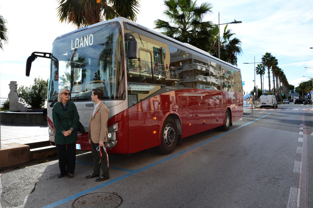 Dopo una fase di allestimento a Moncalieri nell'officina Iveco Orecchia, il nuovo autobus, già in servizio sulle linee extraurbane della provincia, è stato presentato oggi a Loano, nella location di piazza Mazzini.