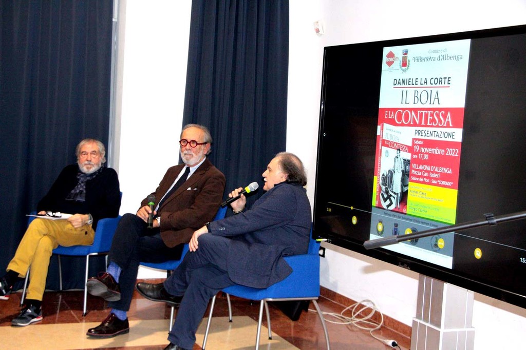 Il racconto al pubblico in sala dei fatti narrati dal romanzo 'Il boia e la contessa", che si consumano fra Torino e Alassio, nel periodo compreso fra l'8 settembre 1944 e il 25 aprile 1945, è stato reso ancora più coinvolgente dalla lettura di passi del romanzo a cura dall'attore Giorgio Caprile e dalla proiezione di video d'epoca. Particolarmente emozionanti le testimonianze dal vivo che hanno riportato la crudezza del periodo e la crudeltà cieca del Boia di Albenga, Luciano Luberti.
