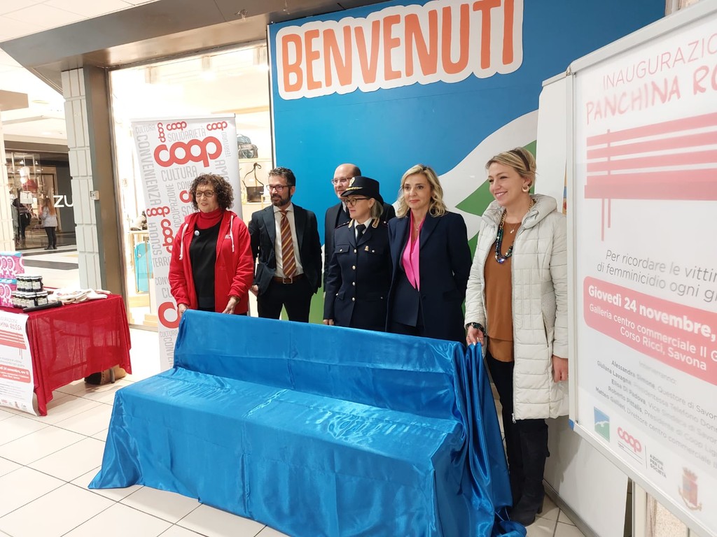Per ricordare le vittime di femminicidio ogni giorno, e non solo nella ricorrenza imminente del 25 novembre, il centro commerciale II Gabbiano di Coop Liguria a Savona ha installato nella galleria una panchina rossa, in collaborazione con la Questura di Savona e il centro antiviolenza Telefono Donna.