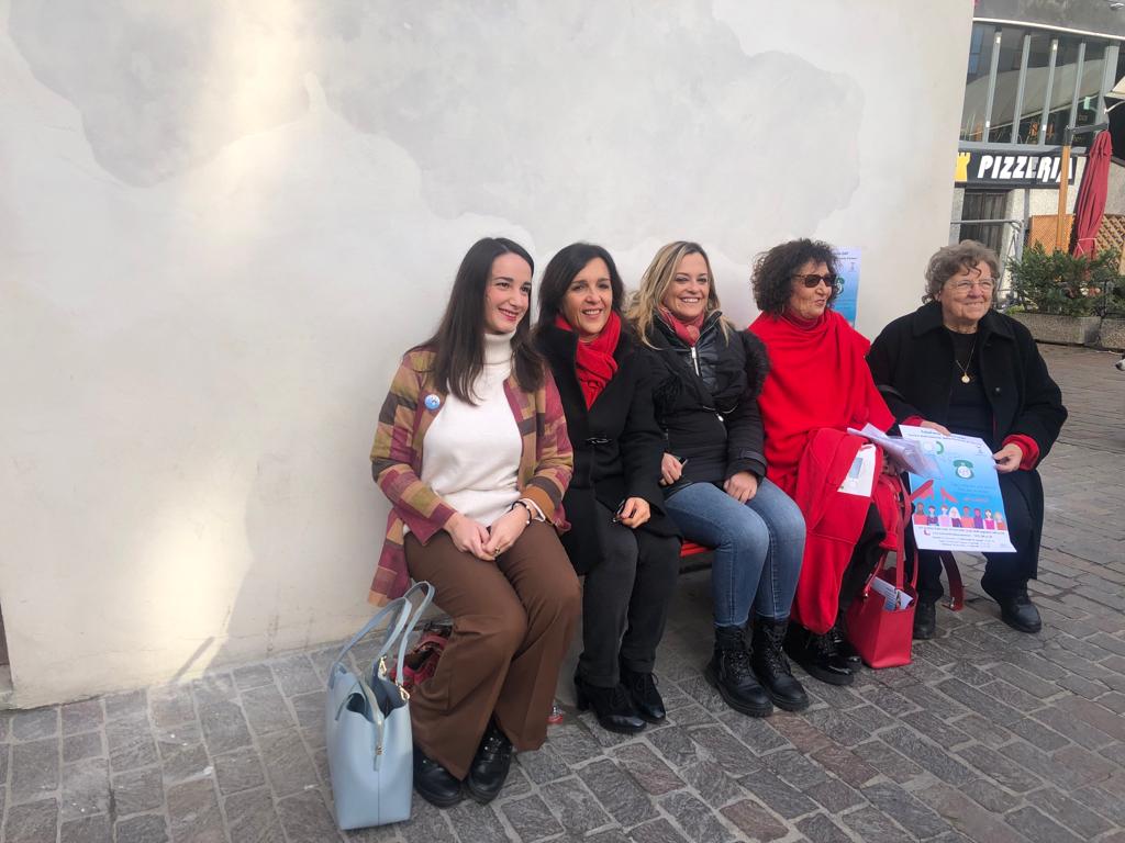 Sulla panchina rossa è stata applicata anche la targa riportante il numero nazionale antiviolenza 1522 e i contatti del centro antiviolenza provinciale per emergenze, richieste di aiuto e denuncia.