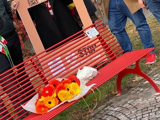 Sulla panchina rossa è stata applicata anche la targa riportante il numero nazionale antiviolenza 1522 e i contatti del centro antiviolenza locale per emergenze, richieste di aiuto e denuncia.