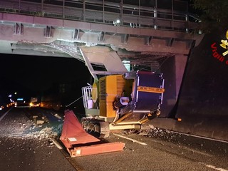 Nella serata di ieri un mezzo pesante aveva danneggiato il cavalcavia di via Vignetta, sovrastante l'autostrada