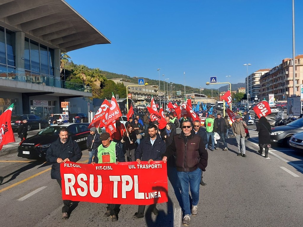 Tutti in corteo per le vie del centro di Savona, dal piazzale della stazione ferroviaria fino a Palazzo Nervi, per far sì che quelle stesse strade (e quelle di tutta la provincia savonese) possano continuare a essere percorse da un servizio di trasporto locale che resti pubblico.