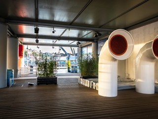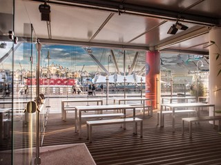 Un progetto che punta alla valorizzazione di un’eccellenza cittadina anche attraverso la riqualificazione dell’area di ponente del Porto Antico. In questo senso hanno ricoperto un ruolo importante anche le operazioni di rifacimento dello spazio frontale dell’edificio, con la realizzazione di un dehor dedicato in parte all’accoglienza di gruppi e scuole, con accesso libero, e in parte come pertinenza del punto ristoro riservato ai clienti della Città dei Bambini e dei Ragazzi e dell’Acquario.