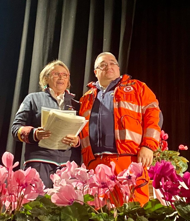 Anche il sindaco della Città delle Torri Riccardo Tomatis ha voluto omaggiare i militi che si donano quotidianamente nella Pubblica Assistenza ingauna: “Il vostro impegno è lodevole: regalate il vostro tempo senza chiedere nulla in cambio. Che impatto da quassù: vedo una platea arancione, siete bellissimi dentro e fuori”. E poi un pensiero per Matteo Grollero, il medico del 118 che ha salvato tante vite, scomparso tragicamente a ottobre dello scorso anno: “Per me era un fratello minore, un grande amico. Abbiamo pedalato insieme parlando del nostro lavoro e dei nostri progetti, tante volte ci siamo trovati insieme nelle emergenze. Abbiamo condiviso la fatica, che ha cementato la nostra amicizia, e tante scelte. Una persona straordinaria di cui dobbiamo mantenere vivo il ricordo”.