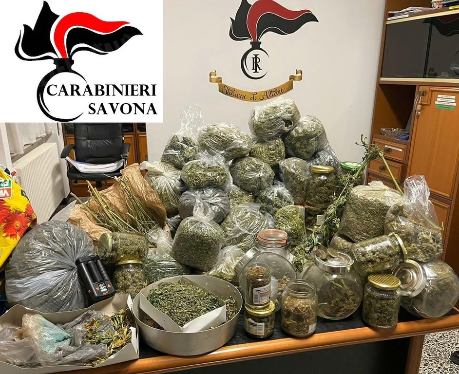 Ubriaco in strada, i carabinieri lo accompagnano a casa e scoprono 8 kg di marijuana: arrestato un 62enne di Altare