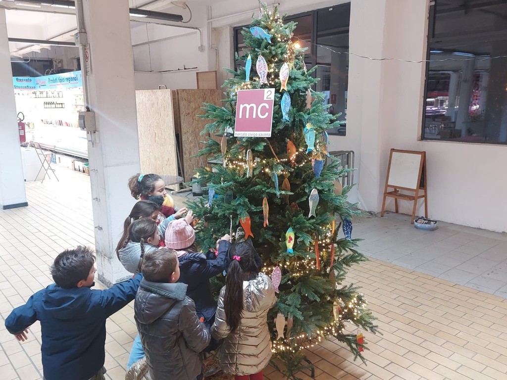 Questi gli sviluppi relativi al mercato civico di Savona nel quale oggi pomeriggio è stato inaugurato un albero di Natale allestito con dei pesciolini dai bambini nei corsi di ceramica degli operatori savonesi di Confartigianato.