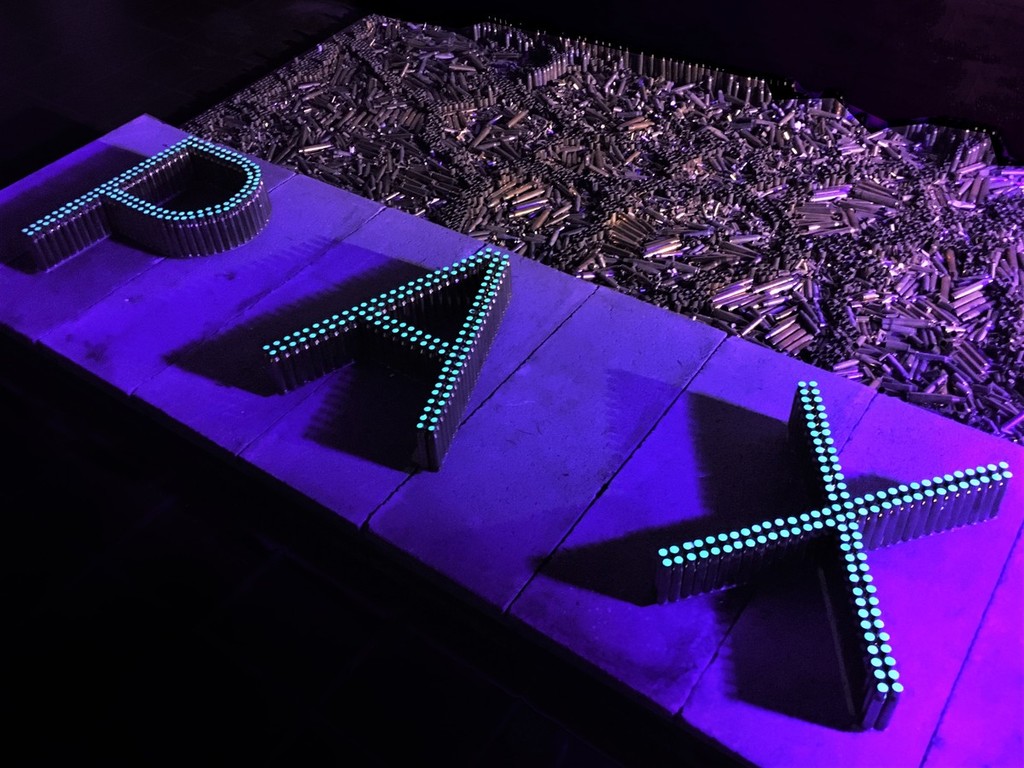 Nella mostra presente nel Palazzo del Commissario sulla Fortezza del Priamar a Savona, Nicola Evangelisti ha presentato "PAX", un'installazione in mattoni da costruzione, bossoli e fosforo, che mette in luce la bellezza e la preziosità degli elementi che la compongono in contrasto con le finalità distruttive e di morte per cui sono stati originariamente concepiti e realizzati.