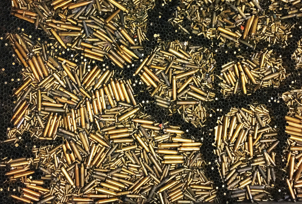NE: Le linee che ho disegnato nei bossoli a terra rappresentano i fronti tra gli stati, le linee di demarcazione che hanno disegnato forzatamente per dividere i popoli. I bossoli sono tutti diversi come le identità delle persone”.
