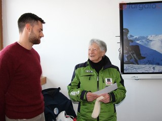 E' stata premiata questa mattina, mercoledì 21 dicembre, nella sede di Prato Nevoso, nonna Emilia Colombo, la "Colombina delle nevi" che, a 86 anni compiuti, ancora porta avanti la sua passione per lo sport e per la montagna (leggi qui).