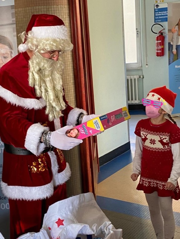 Accompagnati dalla signora Cristina, responsabile dell'Ufficio Relazioni col Pubblico del rinomato ospedale pediatrico genovese, il gruppo è stato accolto da medici, caposala e ausiliari nei reparti di chirurgia e ortopedia: Babbo Natale ha consegnato personalmente i regali, facendo illuminare di gioia gli sguardi increduli dei piccoli pazienti.