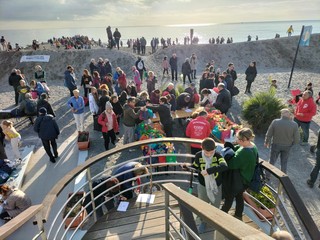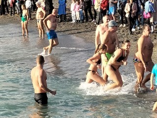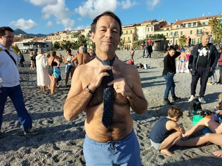 Il tradizionale tuffo di fine anno tenutosi stamane nello specchio acqueo antistante i Bagni Medusa, con una temperatura esterna di 14 gradi e dell'acqua di 15, ha ospitato ben 125 partecipanti provenienti da tutta la Liguria e da tutto il nord Italia: gli impavidi tuffatori si sono messi alla prova affrontando il mare d'inverno per un bagno della durata di pochi secondi o, per i più allenati, di una decina di minuti.