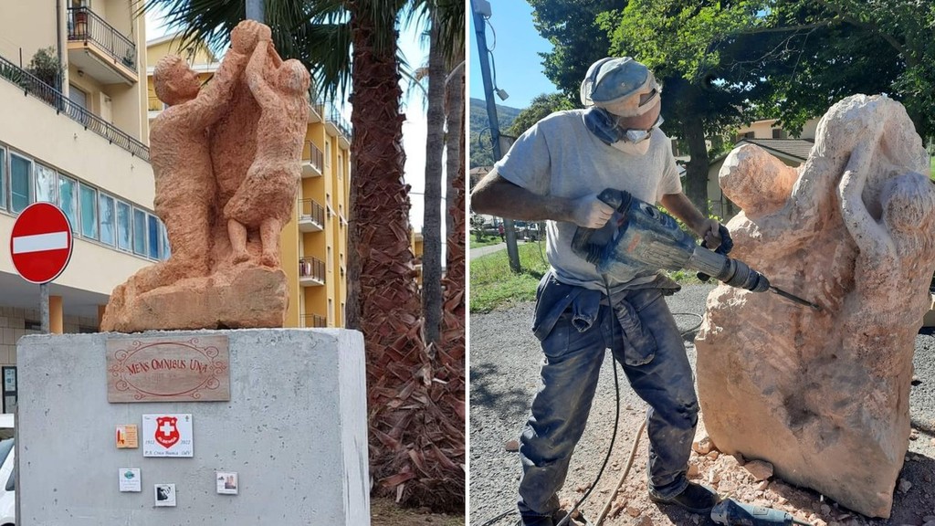 Risale a pochi giorni fa l’inaugurazione dell’ultima scultura da lui realizzata e installata ad Albenga, in Lungocenta Croce Bianca: il Monumento al Volontario. L’opera, realizzata in pietra rosa di Verezzi, è stata commissionata per le celebrazioni del 110° anniversario dalla fondazione della P. A. Croce Bianca ingauna.