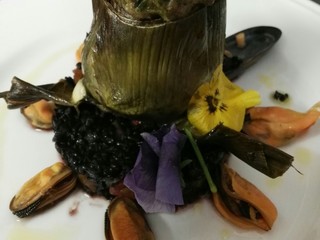 Questo il menù proposto a 40 euro bevande escluse: Brandacujun e carciofi croccanti, tortino di carciofi e mocetta con crema di carciofi, insalatina di calamari e carciofi in arbanella, cappuccino salato al profumo di timo con frollino al parmigiano, cappellacci di carciofi e sughetto di scampi, il carciofo ripieno, morbidezza all'amaretto e tisana.
