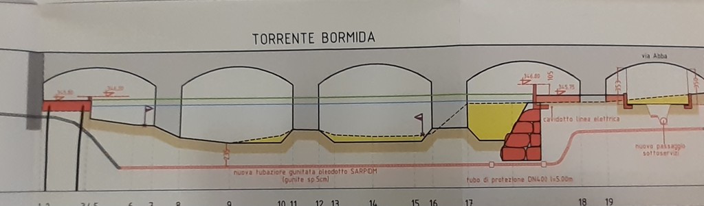 "Gli interventi garantiranno una restituzione di spazio al fiume con un aumento della sezione per lo scorrimento delle acque alluvionali sia nel punto dell'intervento (collo dell'imbuto) ma soprattutto a monte dell'asta del Bormida. Spostato ed interrato a maggiore profondità il tubo dell'oleodotto SARPOM è stata definita la scogliera nel tratto del ponte a 7 arcate della Sp 29, unendolo a quello già realizzato nel tratto a monte".