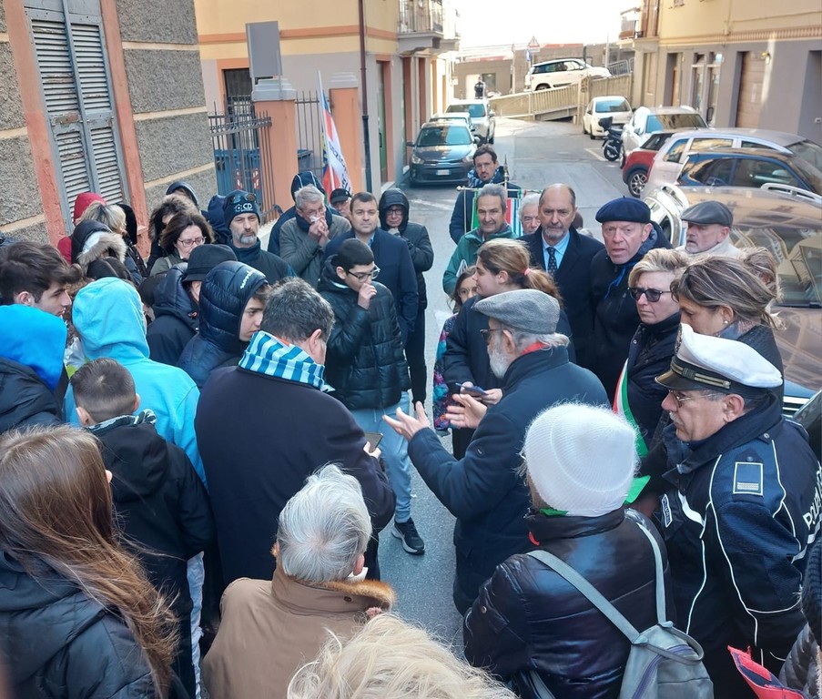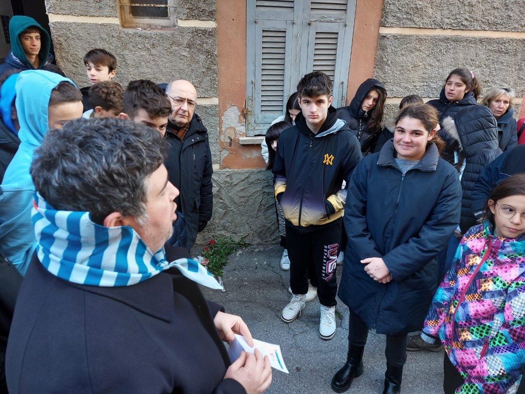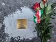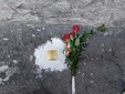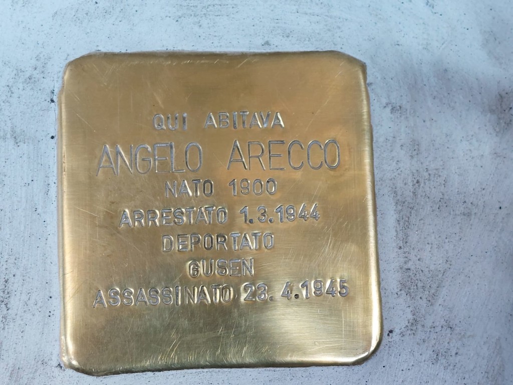 Una pietra d'inciampo e tre rose rosse in ricordo del cellese Angelo Arecco, deportato in Germania, che morì nel campo di concentramento di Gusen, sotto campo di Mauthausen in Austria, il 23 aprile 1945.